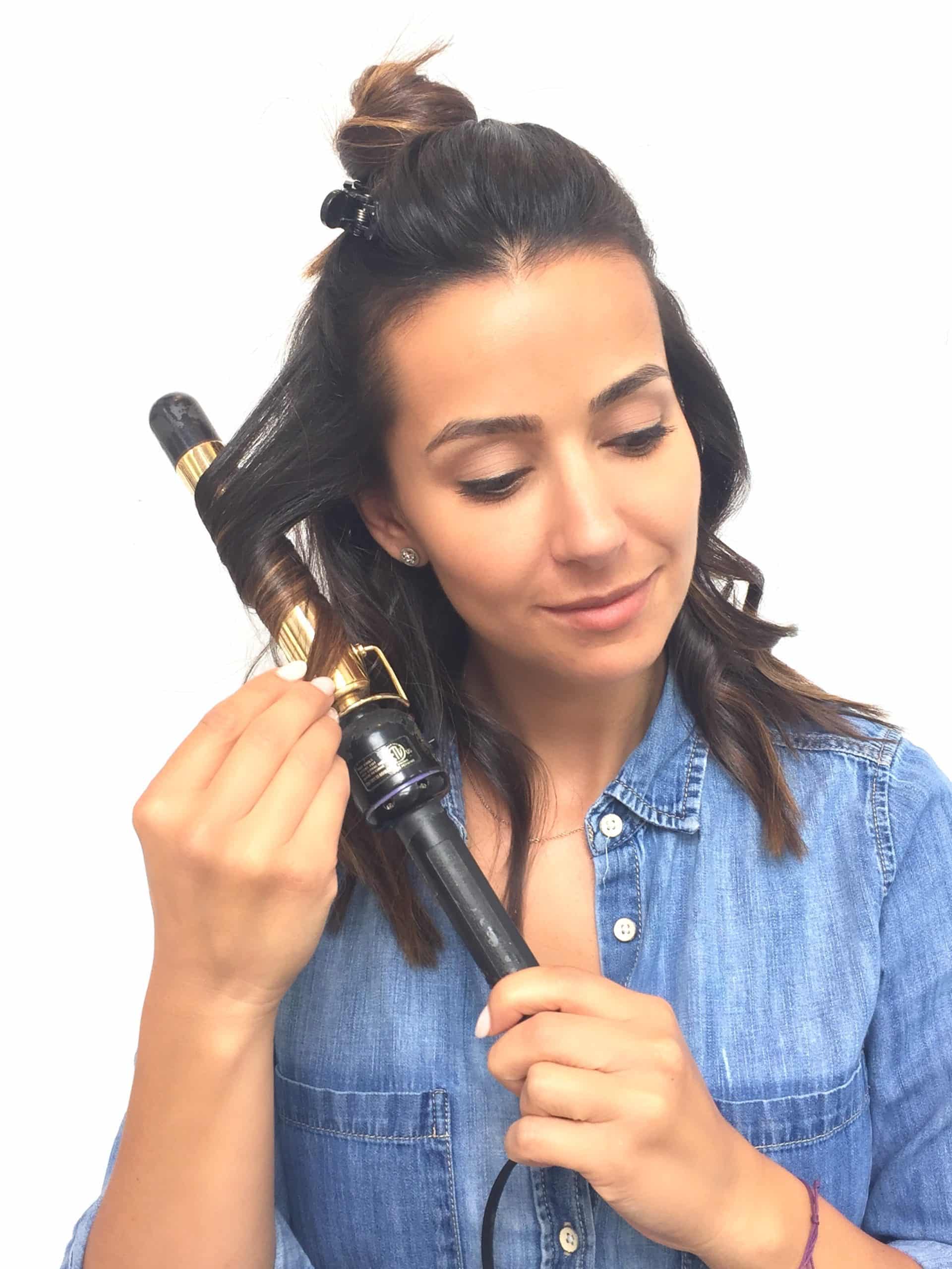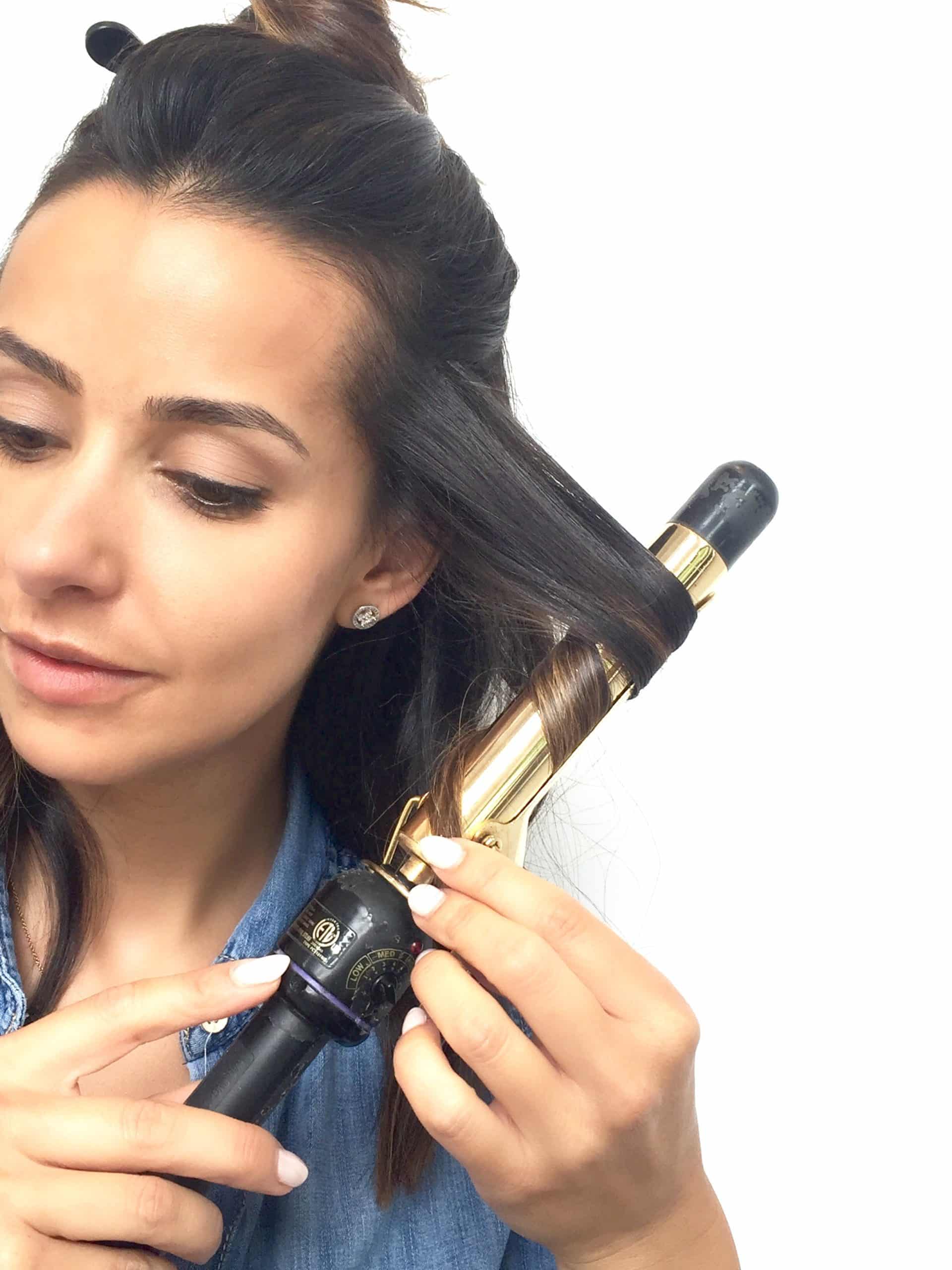 Once my hair is dry I section it and using a regular curling iron (I prefer a 1 ½ inch barrel) I start curling my hair taking small to medium sized pieces.